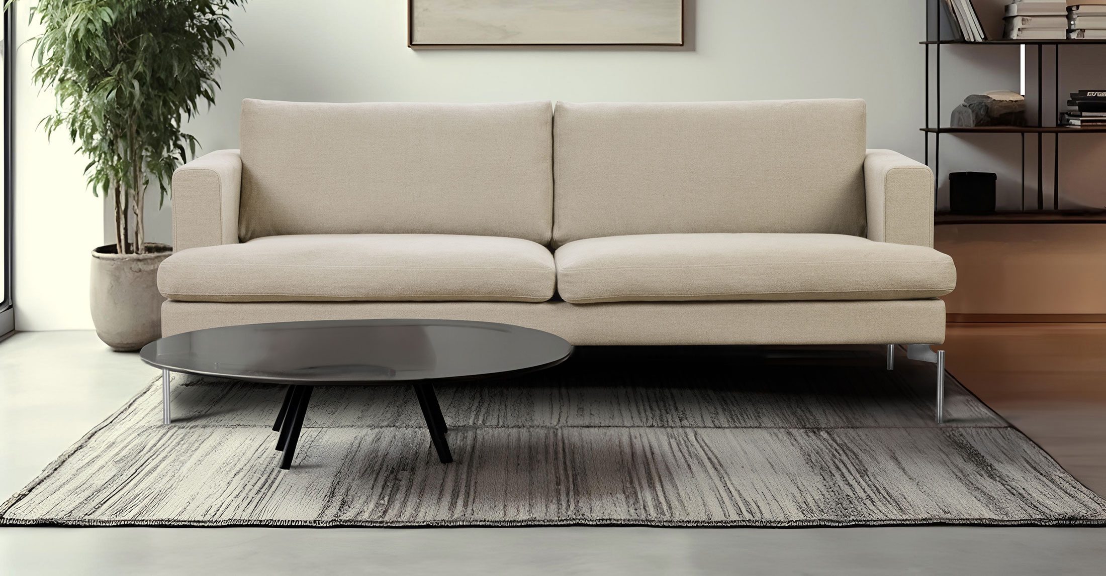 SL 274 is slightly raised from the floor with deep, soft and wide cushions to sit on. Fits right into Scandinavian homes. CASUAL IN NORDIC STYLE.